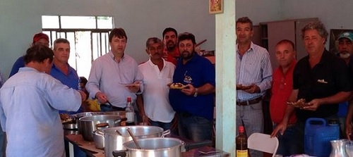 O prefeito de Luiziana, Mauro Slongo, foi a Nova Cantu conhecer as pontes de viga de ferro que estão sendo construídas. O prefeito anfitrião Airton Agnolin recebeu o visitante no acampamento das obras, na comunidade do assentamento José Arnaldo. Teve direito a almoço e tudo. Ah, tá pensando o quê!...