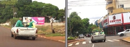 "Camionete com adesivo da prefeitura anda pela cidade (inclusive no centro) com trabalhadores na caçamba. Pode isso?" Junior