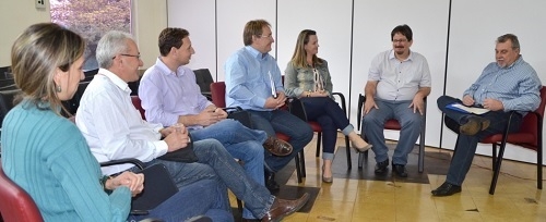Ubiratã - Secretários de cinco municípios - Maripá, Quatro Pontes, Palotina, Guaíra e Toledo - estiveram reunidos com o prefeito Baco Duarte. Todos participam da Escola de Desenvolvimento de Líderes, do Seabre. O objetivo do encontro foi incrementar uma proposta de industrialização em municípios de pequeno e médio porte no Oeste do Estado.