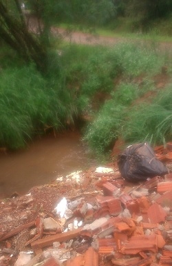 "Entulho às margens do Rio Água da Morte, em Boa Esperança. Caso meu quintal esteja sujo e seja encontrado foco do mosquito transmissor da dengue: Multa de R$ 400 a R$ 600, certo? Quanto vale a multa para essa sujeira mostrada nas fotos?"