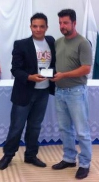 O filho dele, Dilmércio Daleffe, recebeu uma placa em nome da família.