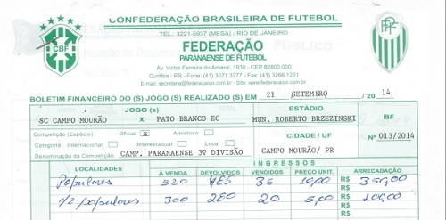 Ficou longe de pagar as despesas da partida, que totalizaram R$ 3,2 mil.