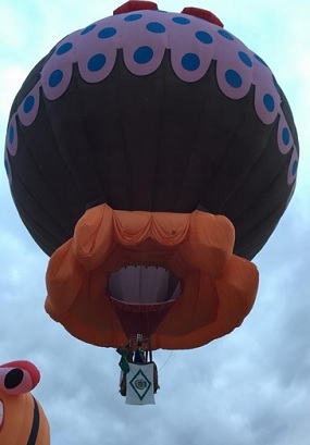 O mourãoense Milton Lima foi ao Estados Unidos participar do maior e mais famoso evento de balonismo do mundo, o Festival de Albuquerque. São mais de mil balões, de todas as formas que se possa imaginar, por lá. E olha só o que desfilou pelos céus da terra do Tio Sam: a bandeira de Campo Mourão. Levada pelo Miltão, é claro. Ah, só faltou escrever "Brazilian Food Center"...
