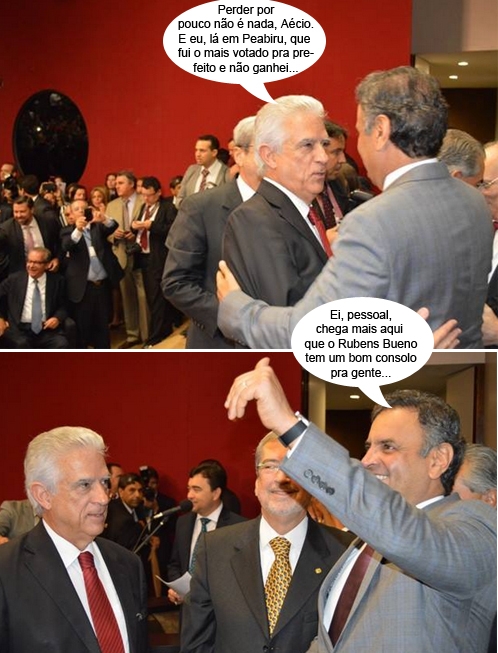 Os cliques são desta quarta-feira, quando o senador Aécio Neves (PSDB) retornou ao Congresso Nacional após a eleição presidencial. Ele se encontrou com parlamentares da oposição, entre eles, o deputado federal Rubens Bueno (PPS), que foi prefeito de Campo Mourão. Pra quem não lembra, Bueno foi candidato a prefeito de Peabiru, em 1976, e, apesar de ser o mais votado, não se elegeu. Coisas da ditadura...