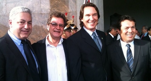 O governador Beto Richa foi empossado nesta quinta-feira para o segundo mandato. Olha só em estava em Curitiba acompanhando tudo: Douglas Fabrício (agora secretário de Estado do Esporte e Turismo), Ricardo Widerski (gerente regional da Cohapar), Ricardo Soavinski (secretário de Estado do Meio Ambiente) e Márcio Nunes (deputado estadual eleito).
