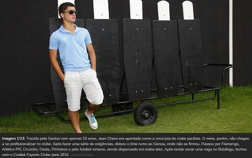 Lembra do Jean Chera, o "menino fenômeno" da Adap? Ele continua sendo notícia nacional. Desta vez, saiu no portal UOL num quadro com o título "Promessas que nunca vingaram no futebol". O jogador assinou contrato com o Cuiabá Esporte Clube e vai disputar o Campeonato Matogrossense deste ano.