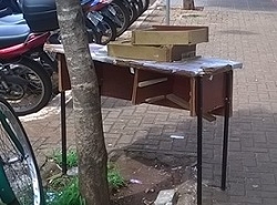Cena 1: o canteiro central da av. Manoel Mendes de Camargo, esquina com a rua Mato Grosso, serve de depósito para o que restou de um móvel de escritório. Cena2: a calçada da av. Capitão Índio Bandeira, entre as ruas São Paulo e Harrison José Borges, recebe de "enfeite" uma mesa de escritório caindo aos pedaços. As duas fotos foram feitas na manhã desta segunda-feira.