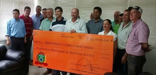 Barbosa Ferraz - Vereadores estiveram com o prefeito Gilson Cassol nesta terça-feira. Foram levar as sobras do legislativo, num total de R$ 45 mil. Teve checão simbólico e tudo. Cassol publicou agradecimento pelo ato em postagem no Facebook.