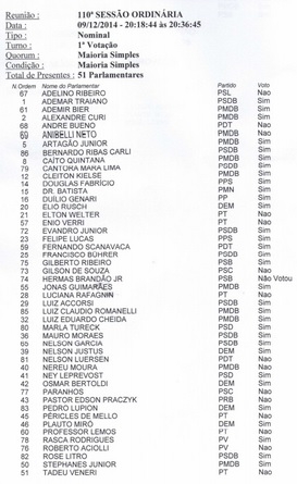 Houve um voto para Edson Battiani (PPS), que estava ausente.