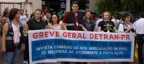 Servidores do Detran também estão em greve. Nesta quinta-feira um grupo deles se juntou aos professores durante mobilização em frente ao Núcleo Regional de Educação. "O pacotaço tira direitos não só dos professores, mas de todos os servidores do Estado", frisou o coordenador regional da Sindesp, Raul Bispo. Durante a greve, apenas os serviços essenciais estão sendo feitos na 8.a Ciretran.