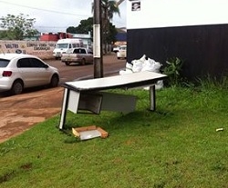 "Sofá abandonado no canteiro central da av. Guilherme de Paula Xavier. O clic foi feito neste domingo. Infelizmente, muita gente em Campo Mourão ainda acha que canteiro central é lugar de lixo".