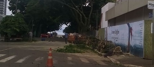 O massacre da serra elétrica em Campo Mourão não para nem aos domingos. Na av. Capitão Índio Bandeira, esquina com rua Interventor Manoel Ribas, cinco árvores foram derrubadas na manhã deste domingo, com direito a rua fechada e tudo. Motivo? O prédio está sendo reformado para abrigar uma loja e as árvores iriam "atrapalhar". Hummmmm...