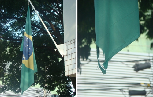 Por falta de orçamento, a Justiça Federal vai instalar a segunda vara em Campo Mourão sem a contratação de novos servidores. Só que parece que o orçamento do judiciário federal não anda curto só pra isso. A bandeira em frente à sede de Campo Mourão que o diga. Como se vê nas fotos, o pavilhão nacional está rasgasdo...