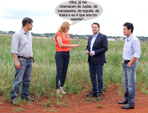 O clic é desta segunda-feira, quando o deputado federal Fernando Giacobo esteve em Campo Mourão e foi levado pela prefeita Regina Dubay ao terreno onde serão construídas as novas unidades do programa “Minha casa, minha vida”. Os vereadores Jorge Pereira e Toninho Machado acompanharam. Do PR só faltou Olivino Custódio. Por que será, hein?...