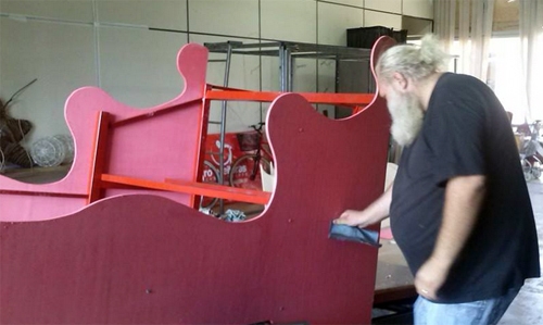O pessoal da Fundacam trabalha a todo vapor pra arrumar os enfeites natalinos que devem ser instalados até sexta-feira nas praças centrais de Campo Mourão. E todo mundo tem que por a mão na massa, até o Papai Noel deixa a fábrica de brinquedos de lado para dar um retoque na montagem do trenó. Ah, pensa que é fácil, é?...