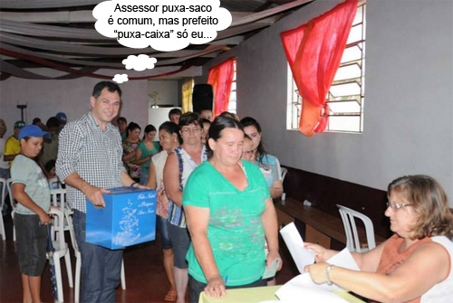 O clic é desta quinta-feira, em Mamborê, quando aconteceu a tradicional entrega de cestas básicas aos servidores municipais. O prefeito Nei Calori pariticipou da entrega e até ajudou na hora de carregar a "cestaiada". No mesmo evento ele anunciou a liberação do 13.o salário. Ah, quem precisa de Papai Noel...