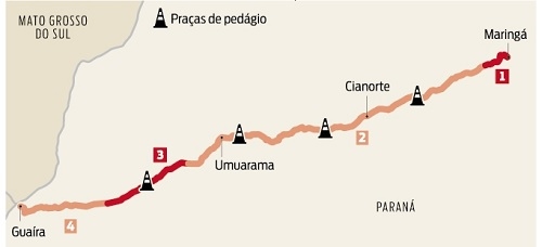Das quatro praças de pedágio que serão instaladas na PR-323, uma ficará em Terra Boa.