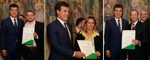 Os prefeitos João Cláudio Romera (Quinta do Sol), Elza Aparecida da Silva (Altamira do Paraná) e Luiz Volpato (Moreira Sales) fizeram até pose ao lado do governador Beto Richa.