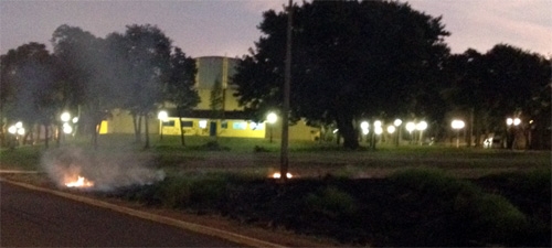 “Os finais de tarde na região do Albuquerque e Parigot têm sido complicados para quem sofre com problemas respiratórios. Moradores colocam fogo em terrenos para eliminar o mato e o ar fica irrespirável em razão da fumaça. A foto é de uma grande ‘queimada’ nesta terça-feira próximo ao ginásio JK. Isso não seria crime ambiental, já que o fogo pode matar aos poucos as árvores desse terreno? Vander