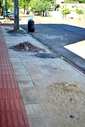 “Aqui na rua Devete de Paula Xavier é assim. O monte de areia e os outros dois primeiros foram deixados como “presente” depois da colocação dos postes republicanos. Isso que, se observarem bem, tem uma “água” escorrendo a partir de certa altura. Ainda durante a colocação, algum cano deve ter sido arrebentado, porque não párea de escorrer. E o cheiro, francamente, é triste. Mais ao fundo, o último monte é de um vizinho que sabe que não vai ser fiscalizado. Beleza de paisagem!” Paula