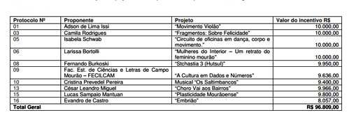 Dez foram aprovados, num total de R$ 96,8 mil.