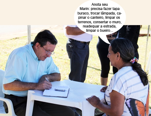 O clic é desta sexta-feira, quando aconteceu o encerramento da etapa Asa Leste do programa Prefeitura no Bairro. Nesse dia houve descentralização do atendimento das secretariais municipais. Olha o secretário José Marin (Obras) aí, anotando os pedidos de uma moradora. Só não pode perder esse agenda aí, hein?...
