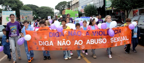Mais de 500 pessoas participaram, na praça São José, do lançamento da campanha de combate ao abuso e exploração sexual de crianças e adolescentes, e de pessoas em situação de rua. A promoção foi do Creas, da Secretaria de Ação Social. Após o lançamento houve passeata pelas ruas do centro. Uma cartilha com orientações será distribuída nas escolas de Campo Mourão. Só faltou o grito de guerra: “O povo na rua, tarado a culpa é sua!”...