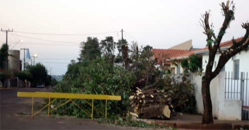 “Essas árvores foram podadas drasticamente, sem motivo algum, pela administração de Peabiru, na rua Julio Carneiro Camargo, esquina com a rua Cassemiro Rodomiski”.
