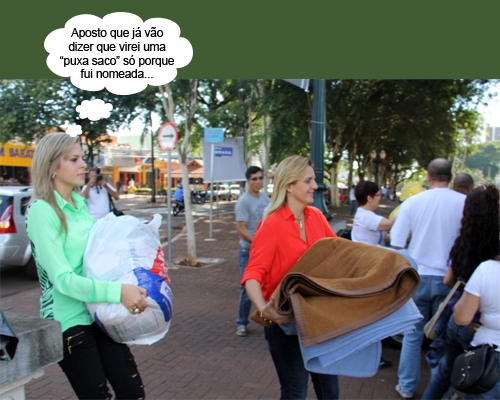 A prefeita Regina Dubay e a filha Anelise, que preside o Provopar, deram uma mãozinha na hora de carregar os donativos.