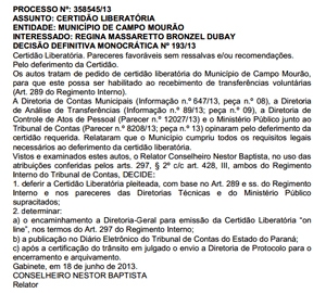 “O município cumpriu todos os requisitos legais necessários ao deferimento da certidão liberatória”, frisou a publicação do TC.