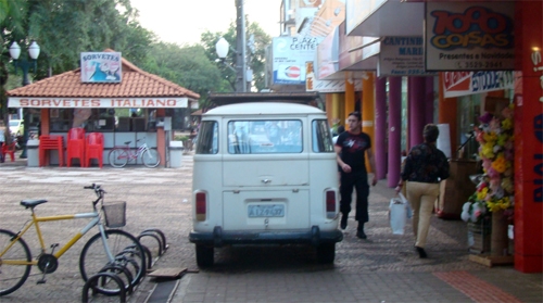 A foto foi feita no final da tarde desta segunda-feira, em pleno calçadão, no centro de Campo Mourão. A Kombosa parou no meio da calçada como se isso fosse a coisa mais normal do mundo. Não teve com não lembrar o poeta Carlos Drummond de Andrade: No meio do caminho tinha uma Kombi. Tinha uma Kombi no meio do caminho...