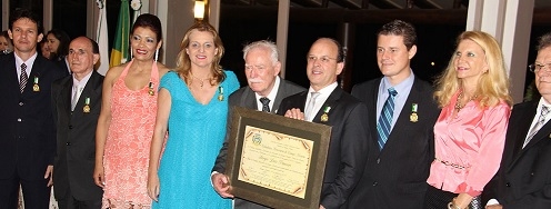 O ex-vice-presidente da Coamo, Sérgio Panceri, recebeu nesta sexta-feira o título de Cidadão Honorário de Campo Mourão. A sessão solene foi realizada no Recanto do Criador. A homenagem foi uma iniciativa do vereador Luiz Alfredo. Panceri recebeu o título das mãos da prefeita Regina Dubay e do presidente da Câmara, Pedrinho Nespolo. Agora, cá pra nós: vocês já viram políticos tão sérios assim na hora da entrega de um título?...