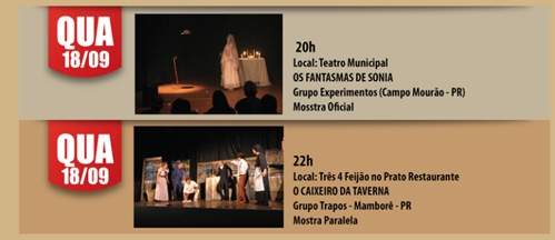 Já a mostra paralela apresenta nesta quarta (22h) “O Caixeiro da Taverna”, do grupo Trapos, de Mamborê.