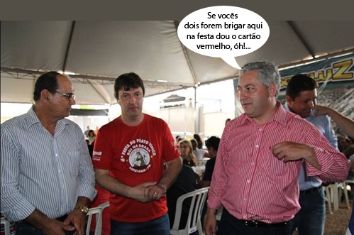 A festa dos 60 anos da Acicam, sábado, teve presença de seis vereadores, prefeita e dois deputados. Tudo muito bem distribuidinho. A prefeita e seus vereadores ficaram à direita do presidente Marcelo Chiroli. Os deputados Rubens Bueno e Douglas Fabrício e os três vereadores do PPS ficaram à esquerda do presidente. Como mostra o clic, deputados e “nobres edis” do 23 ficaram todos juntinho. Ah, digamos que “PPS bom não se mistura”...