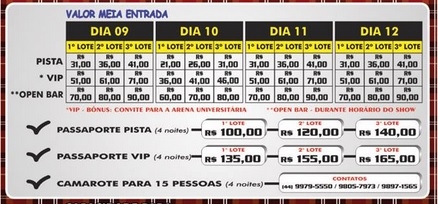 O primeiro lote para o show com Michel Teló, por exemplo, sai a partir de R$ 31.