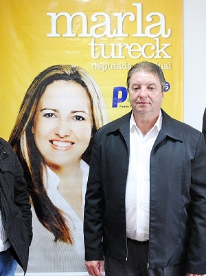 O prefeito de Quarto Centenário, Reinaldo Krachinski, visitou o gabinete da deputada Marla Tureck, na Assembleia Legislativa, em Curitiba. Entregou o protocolo da solicitação de convênio para projeto de irrigação em 39 lotes da Vila Rural. Aí pediu apoio e acompanhamento da equipe de trabalho da parlamentar para agilizar a liberação do processo. E como Marla estava na sessão, o jeito foi fazer foto junto com o banner dela mesmo. Ah, quem não tem cão...