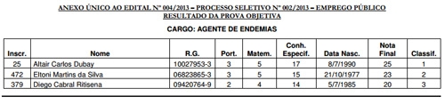 Para agente de endemias eram 141 inscrições e somente 17 passaram.