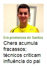 “Chera acumula fracassos na base e sofre com influência negativa do pai”, diz a manchete.