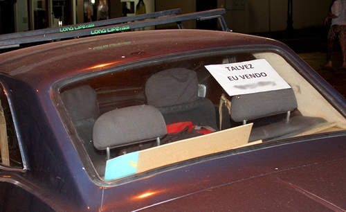 “O Corcel está à venda ou não? No cartaz colocado no vidro traseiro, o proprietário informa que ‘talvez’ venda o veículo. Portanto, só ligando ao número indicado para tirar a dúvida”. Paula