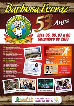 Começa nesta quinta-feira a festança em comemoração ao 53º aniversário de Barbosa Ferraz.