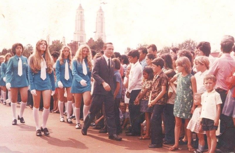 Essa vem direto dos idos dos anos 70 e veio à tona esta semana postada no Facebook. É um desfile de 7 de Setembro, no centro de Campo Mourão (olha a catedral ao fundo). Quem vai à frente é o professor Egydio Martello (Colégio Estadual), que agora dá nome à Biblioteca Municipal. Logo atrás dele, a hoje vereadora Nelita Piacentini. E não tinha buraco na rua, tá vendo?...