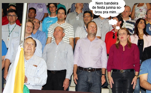 O clic é da cerimônia de abertura da fase final da Copa Coamo, disputada neste sábado, em Campo Mourão. Apesar de várias bandeiras pra serem hasteadas, não sobrou nenhuma para a prefeita Regina Dubay. Assim, a maior autoridade do município teve que se contentar em ficar só assistindo. E olha que Regina é cooperada, hein?...