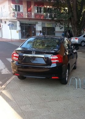 Tem coisas que acontecem em Campo Mourão que até Deus duvida. A foto acima é uma delas. O carrão foi deixado em exposição na calçada, numa boa. Isso em plena esquina da av. José Custódio de Oliveira com a rua São Paulo, em frente ao Banco do Brasil. Detalhe: O veículo está em cima da rampa de acessibilidade.