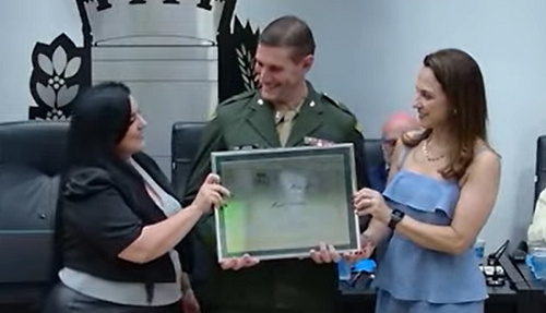 Teve sessão solene na Câmara de Campo Mourão nesta quarta-feira à noite. Foi para a entrega do título de Mérito Militar Mourãoense ao subtenente Marcelo Lansarin. Ele, que é instrutor do Tiro de Guerra, mas está de saída para Belém/PA, recebeu a homenagem das mãos da vereadora autora, Eliane do Café, e da procuradora-geral da prefeitura, Alessandra Chiroli, que representou o prefeito Douglas Fabrício. Apenas três vereadores participaram da sessão.