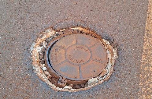 Situação da tampa do bueiro rua Alfonso Germano Hruschaka, quase fundos com Chevrolet Zacarias.