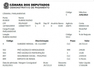 Esses números estão no holerite do deputado federal Rubens Bueno.