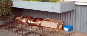 E ainda escreve “Água para os cães” na vasilha deixada ao lado.