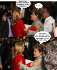 Da série que mata a cobra e mostra a “bicha” morta, olha aí o encontro da prefeita Regina Dubay com a presidenta Dilma Rousseff. Foi quinta-feira, em Pinhais. As fotos não estão lá essas coisas porque foram feitas de muito longe e no meio de um tumulto danado, mas dá pra ver que são elas. Aliás, até agora ninguém entendeu como que Regina conseguiu passar pelo esquema de segurança pra chegar até à presidenta. Ah, o terninho “vermelho-PT” deve ter ajudado...