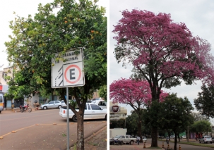 Na rua Santa Catarina, um pé de laranja carregado em plena calçada. Na av. Goioerê, dos ipês roxos super floridos. Uma dá água na boca, outra encanta os olhos. E pensar que tem gente que prefere calçada sem nada...