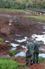 O lago seco para o desassoreamento não ficou lá muito bonito, mas tem outras utilidades, como servir para treinamento dos atiradores do Tiro de Guerra de Campo Mourão. Durante o feriadão eles desenvolveram atividades por lá, com direito ao pé na lama e tudo. Em tempo: esse tipo de “atirador” pooooooooode...